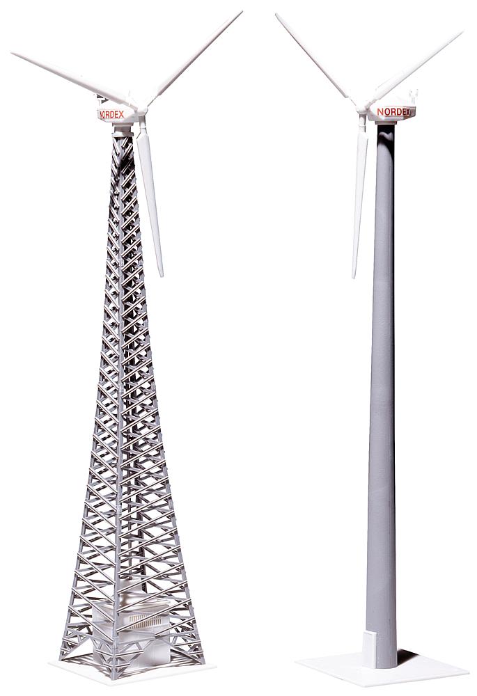 Achtung: Wahlweise in zwei Varianten baubar: mit Gitter- oder Betonmast (Teile liegen bei).