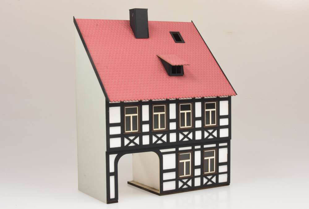 H0 - Harzer Fachwerk-Stadthaus zweistöckig Hofeinfahrt Halbrelief - Weiß (091-1948a) - Mein MBS Shop