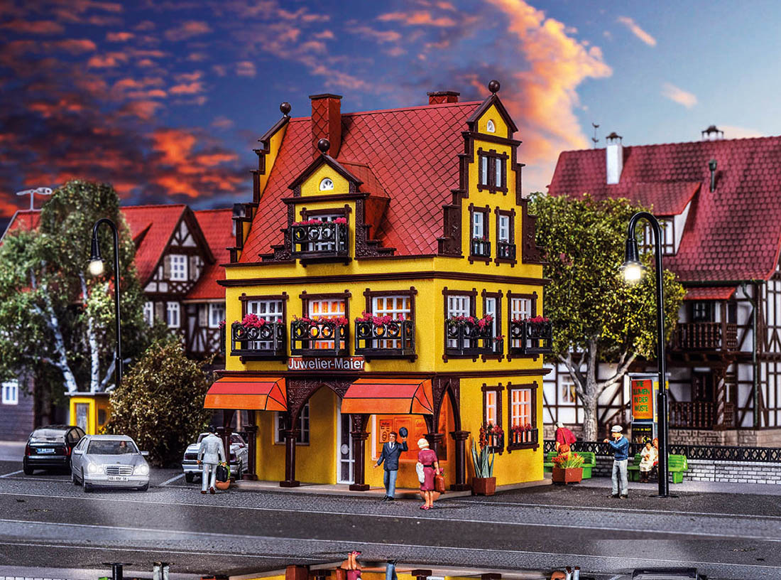 H0 Juweliergeschäft mit Inneneinrichtung undLED-Beleuchtung, Funktionsbausatz