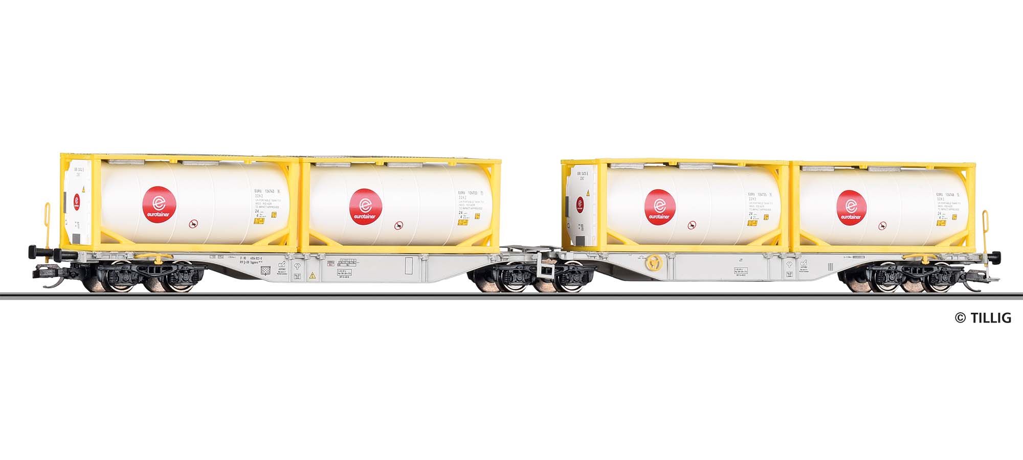Containertragwagen Sggmrss 747 der DB AG, beladen mit vier