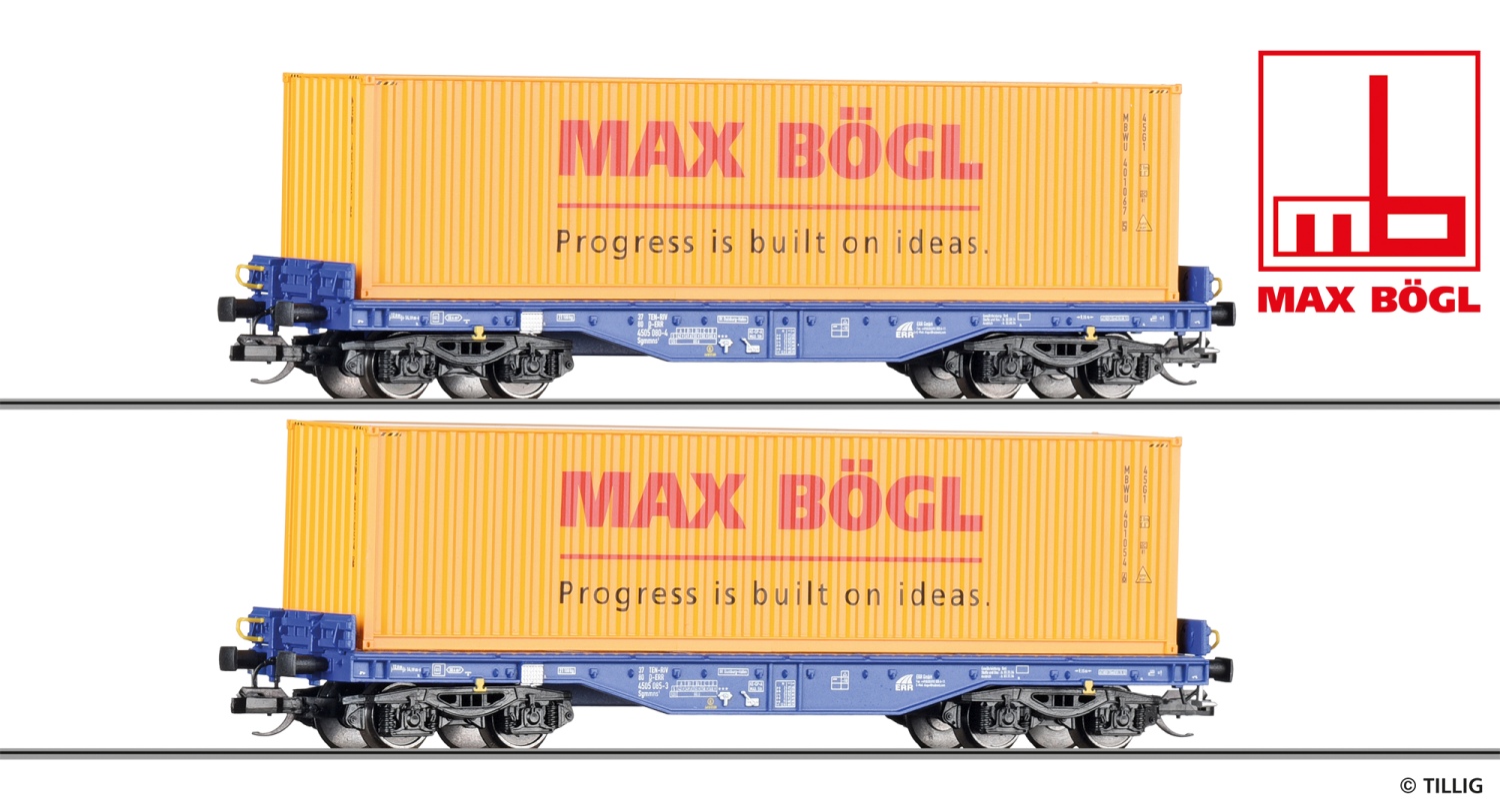 Güterwagenset der ERR, bestehend aus zwei Flachwagen Sgmmns 4505 beladen mit zwei 40‘ Containern, Ep. VI