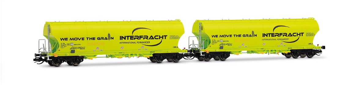 CZ-interfracht, 2-tlg. Set 4-achs. Getreidesilowagen, neongrüne Farbgebung, Ep. VI