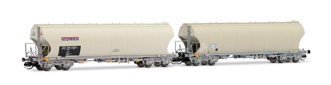 DB, 2-tlg. Set 4-achsiger Silowagen „NACCO“, graue Farbgebung, Ep. IV