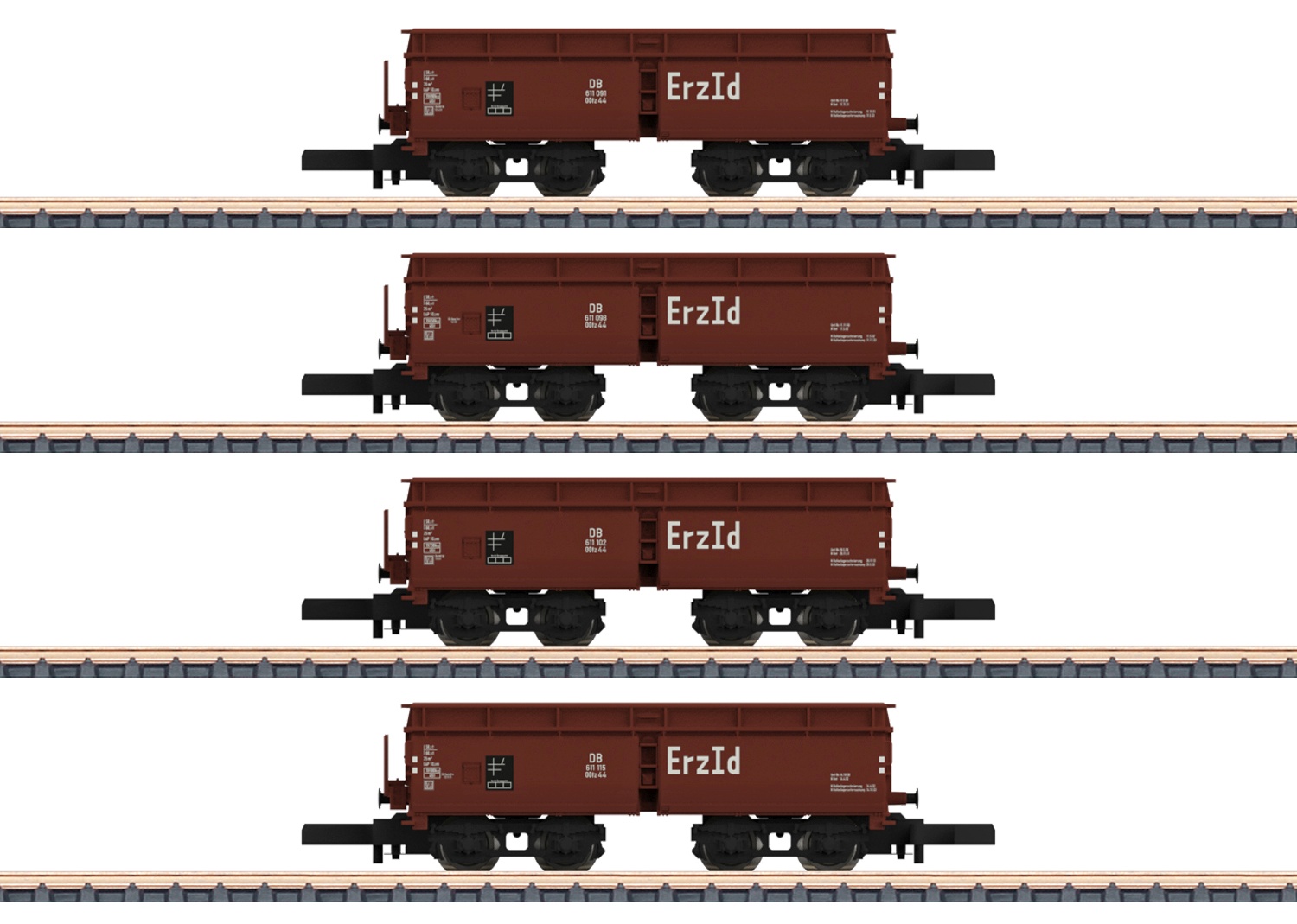 Vorbild: 4 offene Selbstentladewagen Typ OOtz 44 der Deutschen Bundesbahn (DB) im Zustand der Epoche III.