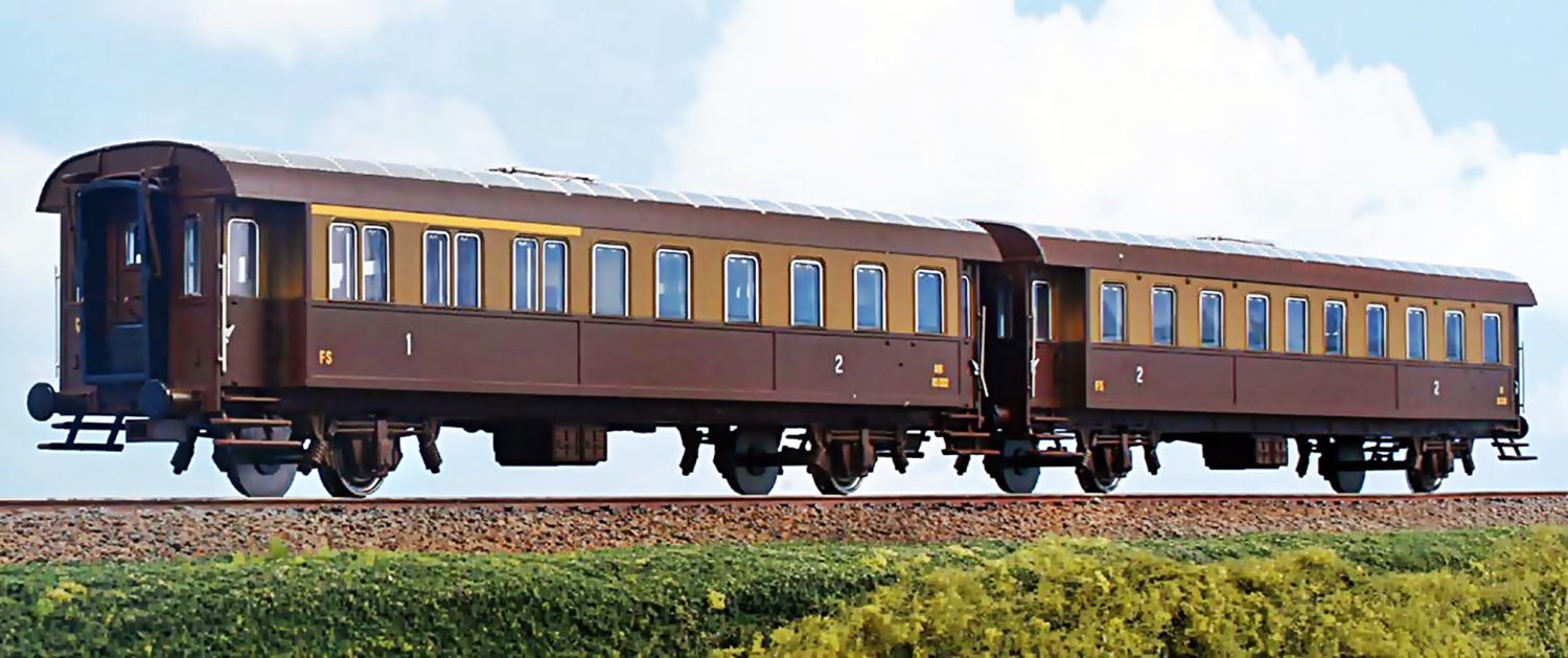 Bestehend aus zwei zweiachsigen FS-Wagen vom Typ Bi 35.000 und Typ ABi 60.000In der originalen braun/isabella-Lackierung.