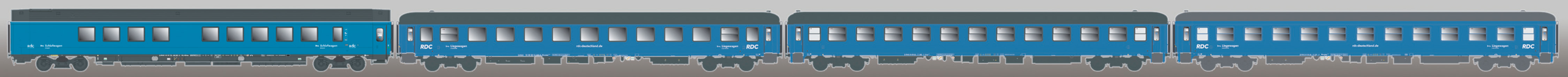 Set bestehend aus Schlafwagen WLABmz Schlafwagen Typ MUn und 3 Liegewagen Bvcmz 248.1 in blauer Lackierung der Privatgesellschaft RDC in Epoche VI.