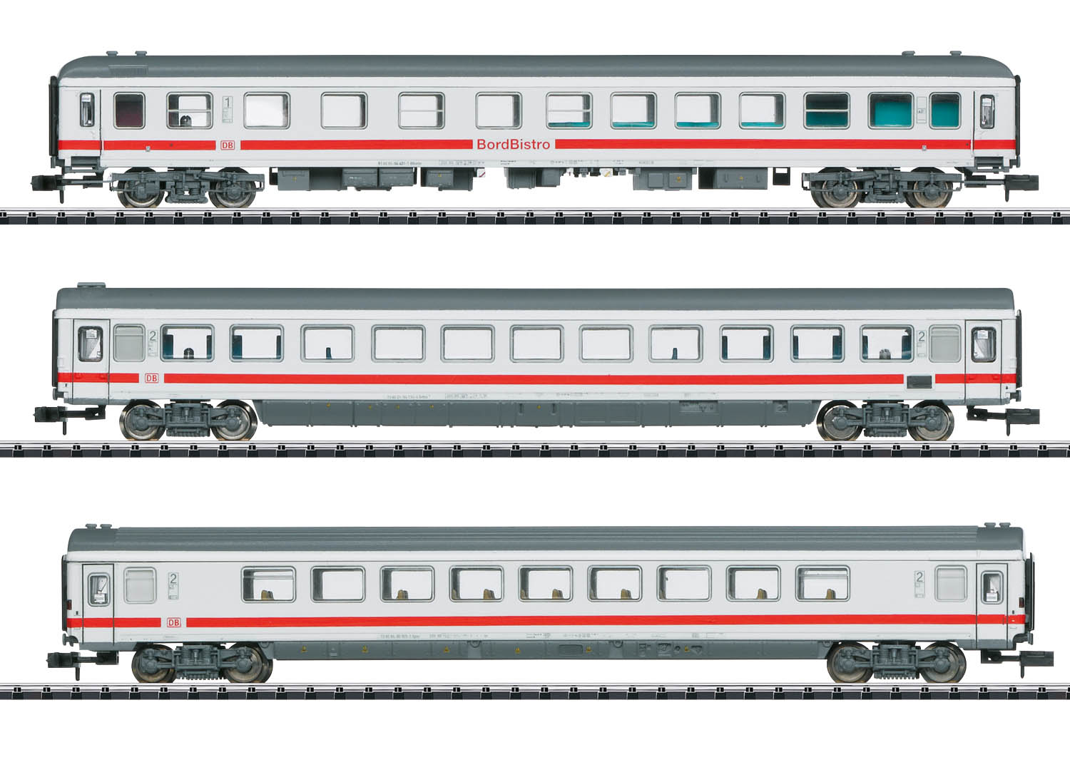 Modell: Wagen im aktuellen Design der Deutschen Bahn AG, mit Kinematik für Kurzkupplung, vorbereitet für nachträglichen Einbau einer LED-Innenbeleuchtung. Gesamtlänge über Puffer 495 mm.