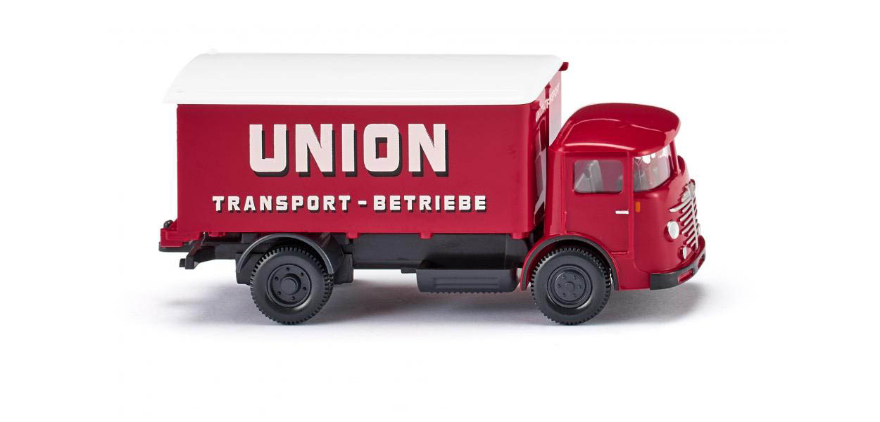 Union-Transport – weithin bekannt waren schon in den 1950er-Jahren diese Speditionsfarben. Sie sorgten einst sowohl im Fernverkehr, aber auch im Nahbereichstransport für verlässliche Warenverteilung. WIKING nimmt den historischen Büssing 4500 Koffer-Lkw aus neuen Formen zum Anlass, um ein zeitgenössisch attraktives Vorbild 87-fach zu miniaturisieren. Für den Verteilerverkehr sollte der Typ 4500 mit einer Nutzlast von 4,5 Tonnen und einem Gesamtgewicht von 8,7 Tonnen das Programm der Braunschweiger Lkw-Schmiede abrunden.