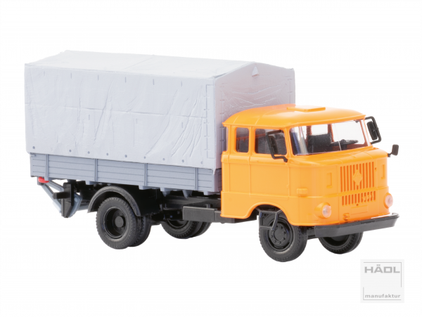 TT - IFA W50L, Speditionskabine mit Holzpritsche, Plane, Ladebordwand - Pastellorange