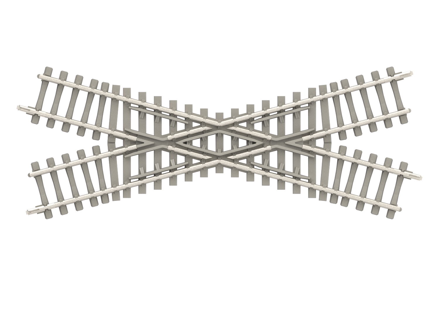 Minitrix Kreuzung mit einer Länge von 104,2 mm. Die Länge entspricht einem geraden Minitrix-Gleis 14904.