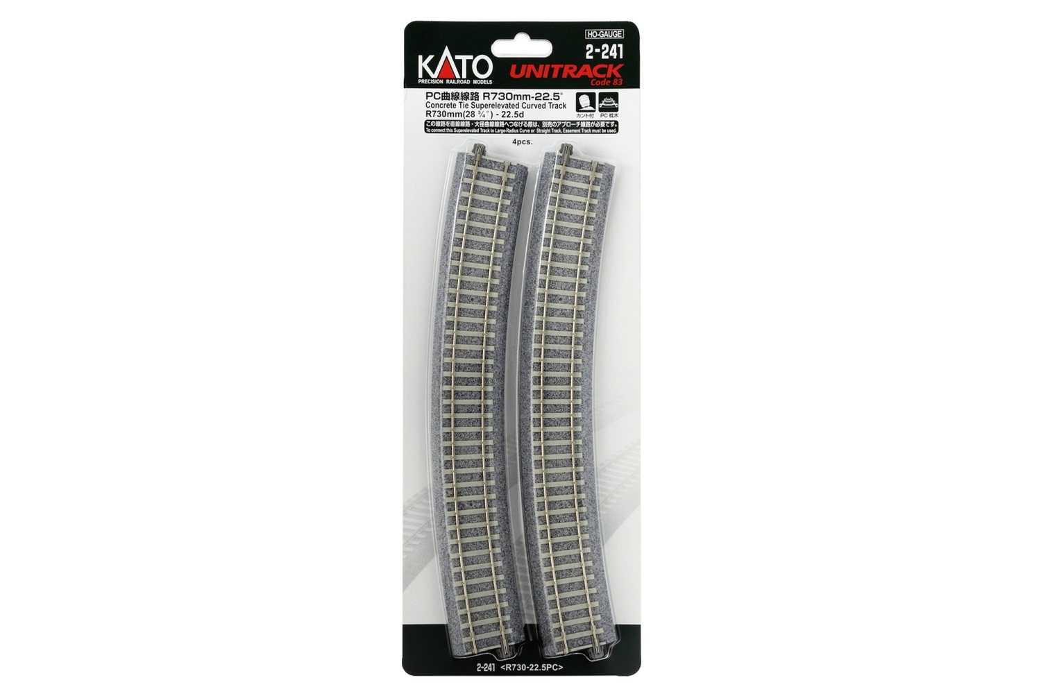 Kato 2-241 - H0 - Gleis überhöht mit Betonschwellen, gebogen, R730 mm 22,5° (4 Stück)