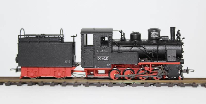 Vorbild: Die 1934 in der Ukraine gebaute Lok wurde im 2 Weltkrieg erbeutet und nach Deutschland gebracht. 1948/49 erhielt sie eine Aufarbeitung im Bw Zittau und wurde dann auf vielen sächsischen Strecken eingesetzt. Ab den 1. April 1953 kam die Lok zur Trusebahn und später ins Burger Netz. 1958 wurde sie nochmals aufgearbeitet und bekam dann die Nummer 99 4541. 1965 wurde die Lok ausgemustert und 1966 zerlegt. Berühmt wurde sie durch den eigenwilligen Namen „Gummidampfer“.