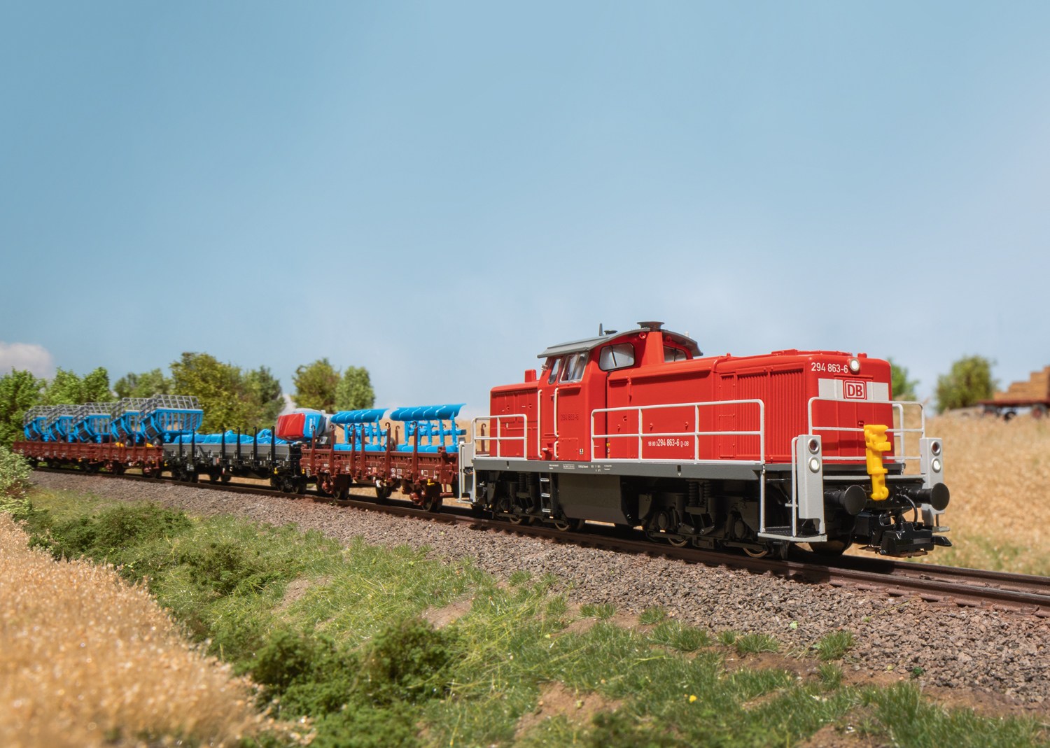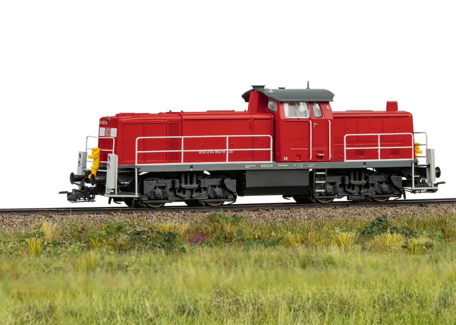 Vorbild: Schwere Diesel-Rangierlokomotive Baureihe 294 der Deutschen Bahn AG. Verkehrsrote Grundfarbgebung. Betriebsnummer 294 863-6. Betriebszustand ab 2007.