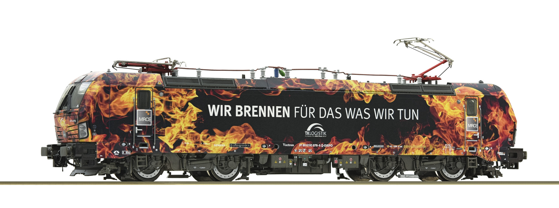 TX Logistik (TXL) hat im Dezember 2020 die Baureihen 182 und 189 im Zuge der Flottenvereinheitlichung durch Vectron Lokomotiven ersetzt. Das betraf auch den „Flammen-Taurus“ 182 572. TXL lässt das Design jedoch nicht verschwinden und hat jetzt den neuen „Flammen-Vectron“ 193 878 mit dem Werbespruch „Wir brennen für was wir tun“ auf die Schienen gestellt.