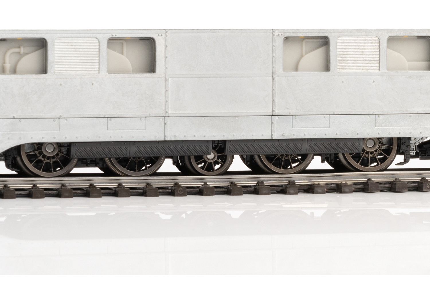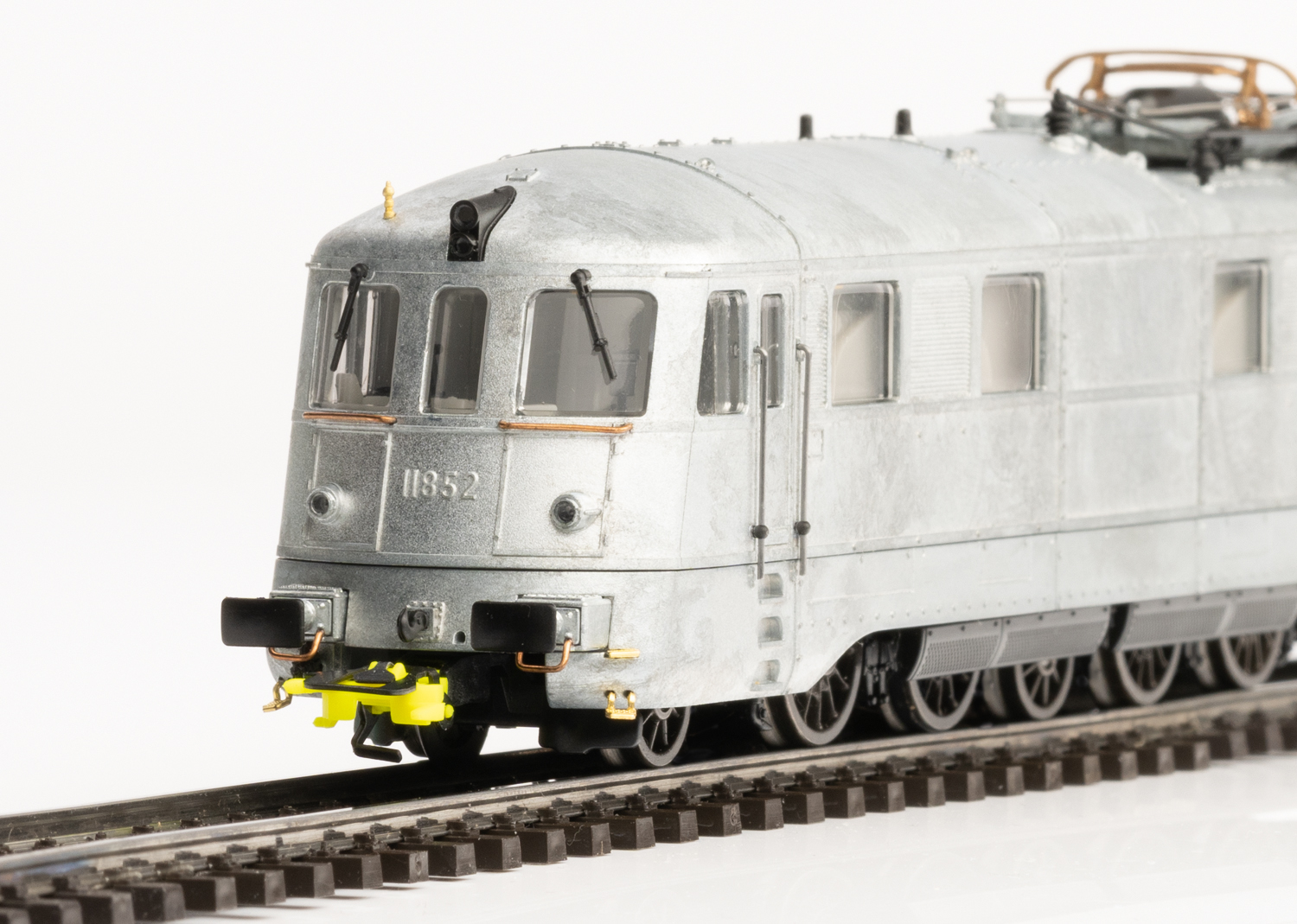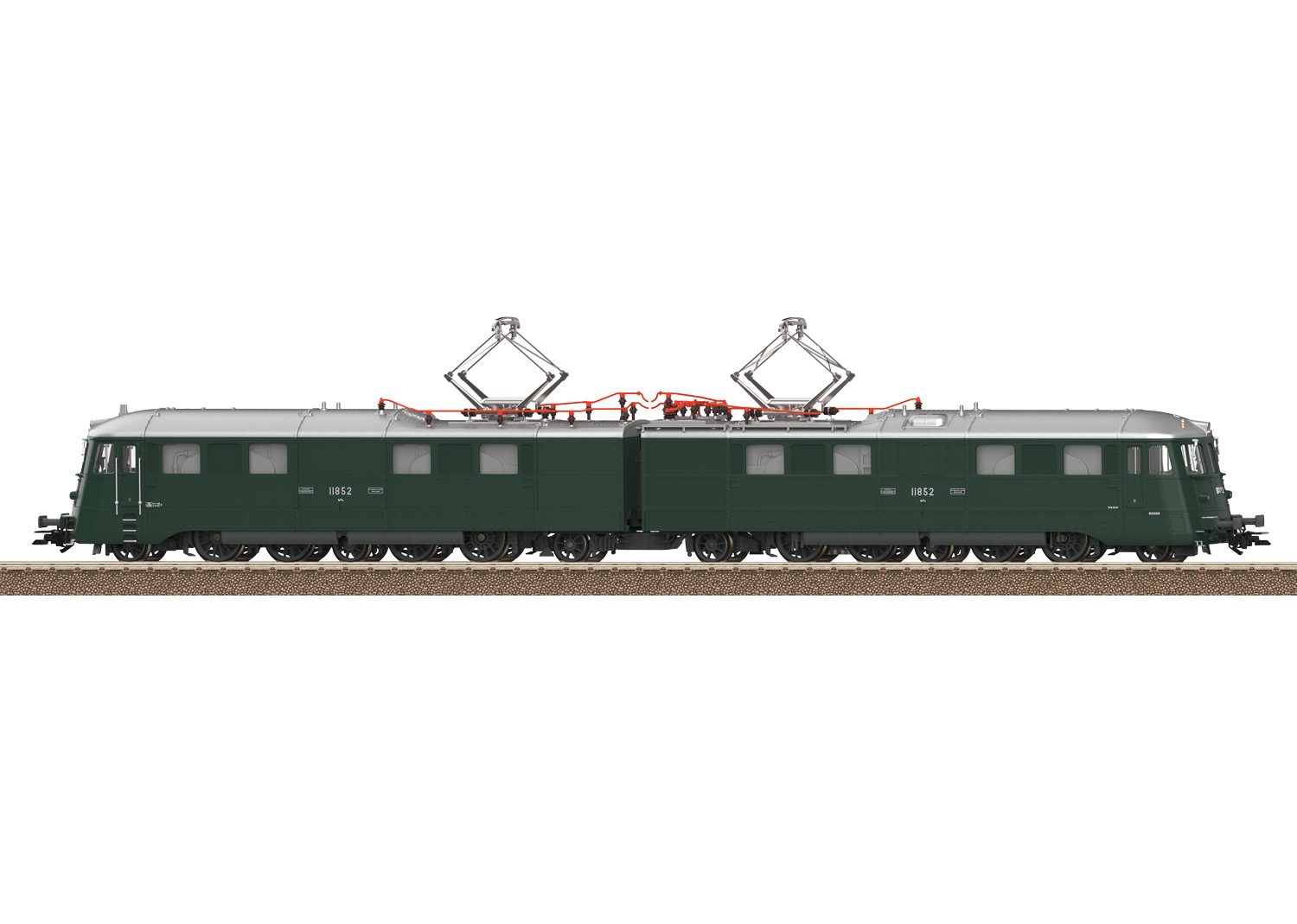 Mit Digital-Decoder und umfangreichen Licht- und Soundfunktionen. In jeder Lokhälfte ein geregelter Hochleistungsantrieb mit Schwungmasse. Jeweils 4 Achsen in jeder Lokhälfte angetrieben. Fahrtrichtungsabhängig wechselndes Dreilicht-Spitzensignal und 1 weißes Schlusslicht konventionell in Betrieb, digital schaltbar. Umschaltbar auf 1 rotes Schlusslicht bei Solofahrt. Doppel-A-Licht-Funktion. Beleuchtung mit wartungsfreien warmweißen und roten Leuchtdioden (LED). Falschfahrtsignal, Führerstandbeleuchtung und Maschinenraumbeleuchtung digital schaltbar. Kulissengeführte Kurzkupplungen an den Enden der Lok, trennbare Kurzkupplung zwischen den Lokhälften. Detaillierte Dachausrüstung mit Dachleitungen, Isolatoren und Dachlaufbrettern sowie Scherenstromabnehmern. Beide Stromabnehmer digital heb- und senkbar. Befahrbarer Mindestradius 360 mm. Die Aussparungen in den Frontschürzen neben dem Normschacht können mit den beiliegenden Füllstücken verschlossen werden. Bremsschläuche und Schraubenkupplungsimitationen liegen bei. Länge über Puffer 39,1 cm.