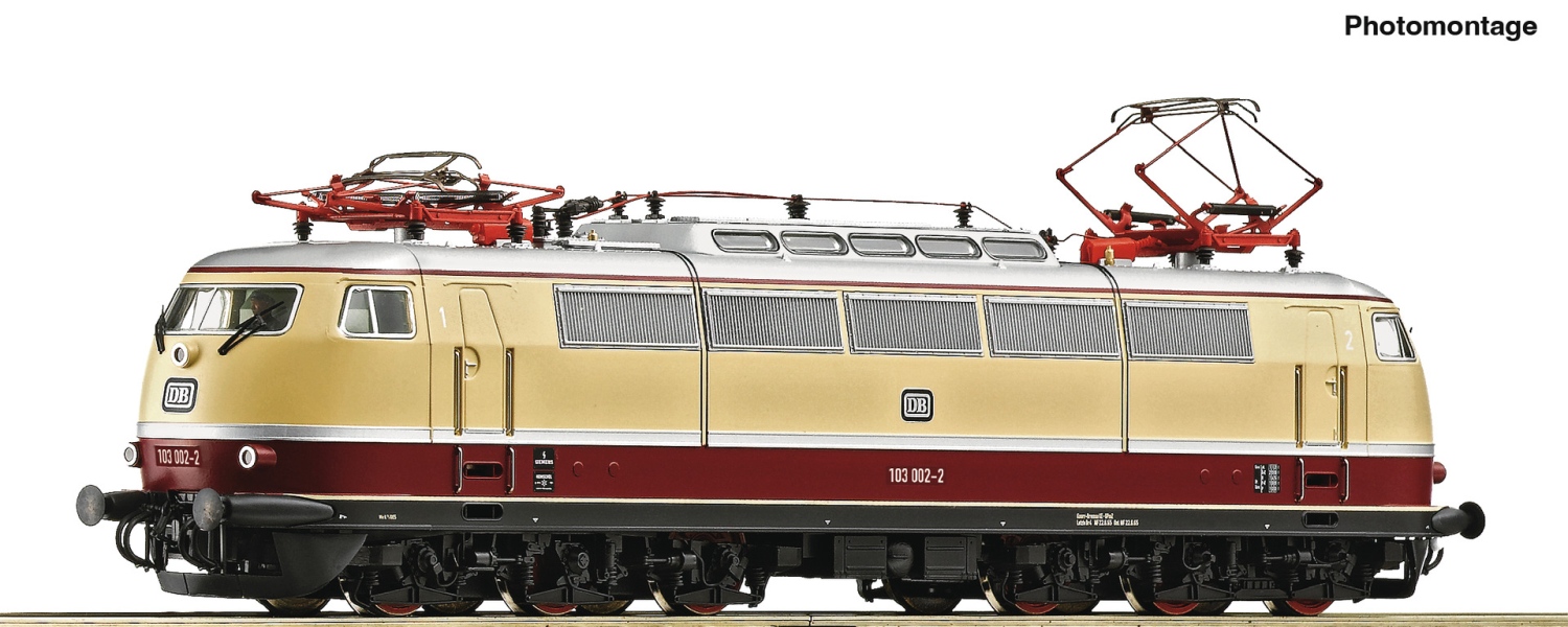 Nachbildung der 103 002, wie sie bis zum September 1976 im Einsatz war. Danach erhielt sie an den Stirnseiten UIC-Steckdosen, Haltegriffe und ergonomische Aufstiegstritte. Ein Jahr später folgten Einholm-Stromabnehmer, bevor im Herbst 1980 schließlich die Schürzen unter den Pufferbohlen entfernt wurden. Das Modell eignet sich hervorragend anstelle einer planmäßigen Serien-103 für den 160 km/h schnellen Schnellzug „Hispania“.