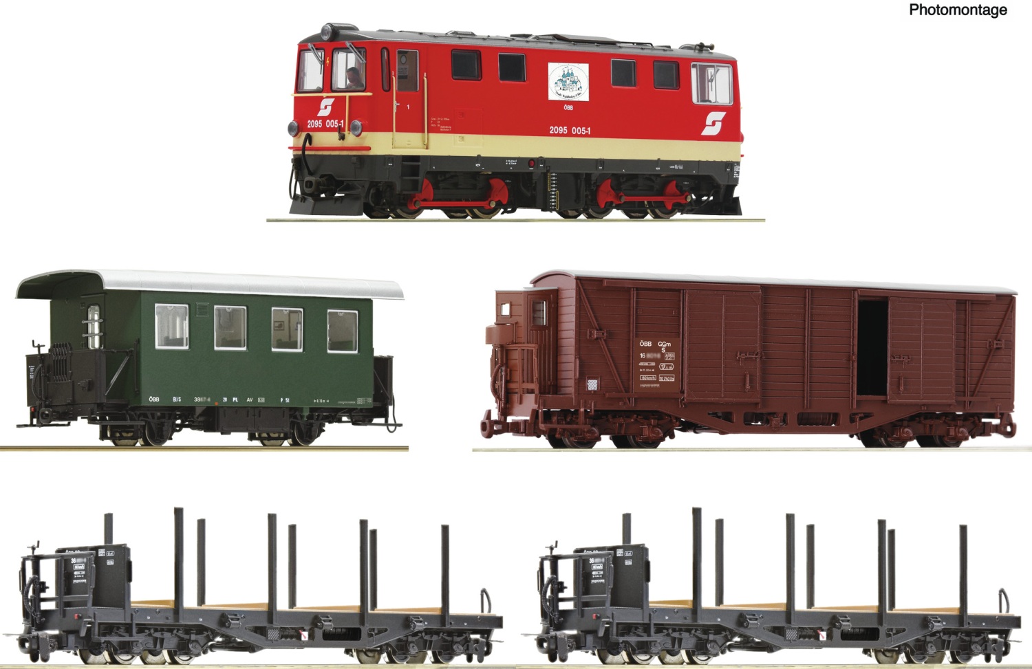 H0e - 5-tlg. Zugset Diesellok BR 2095 mit Güter-, Personenwagen, ÖBB, Ep. V