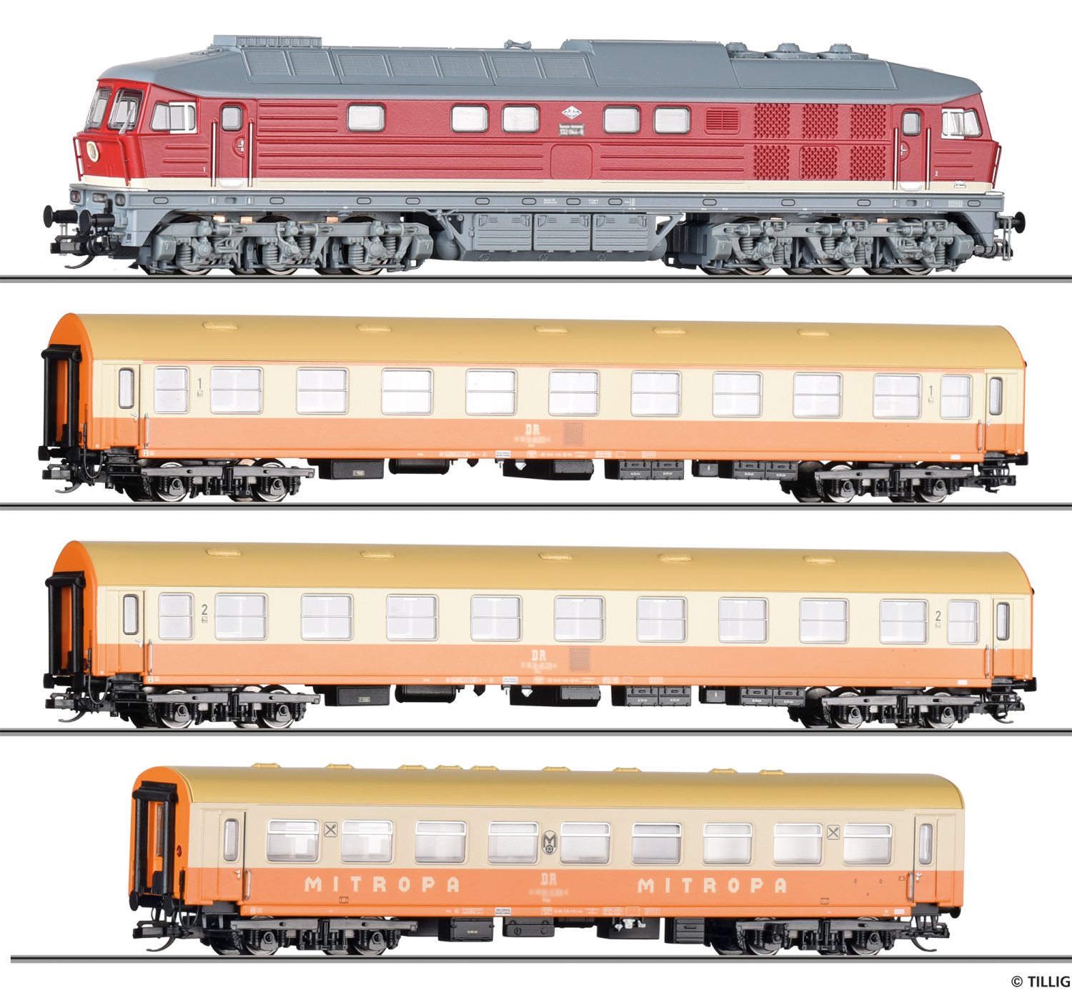 Premium-Einsteiger-Set: Reisezug „Städteexpress“der DR, bestehend aus Diesellokomotive BR 132, einem 1. Klasse Reisezugwagen Typ Y/B 70, einem 2. Klasse Reisezugwagen, Typ Y/B 70 und einem Speisewagen WR, Ep. IV