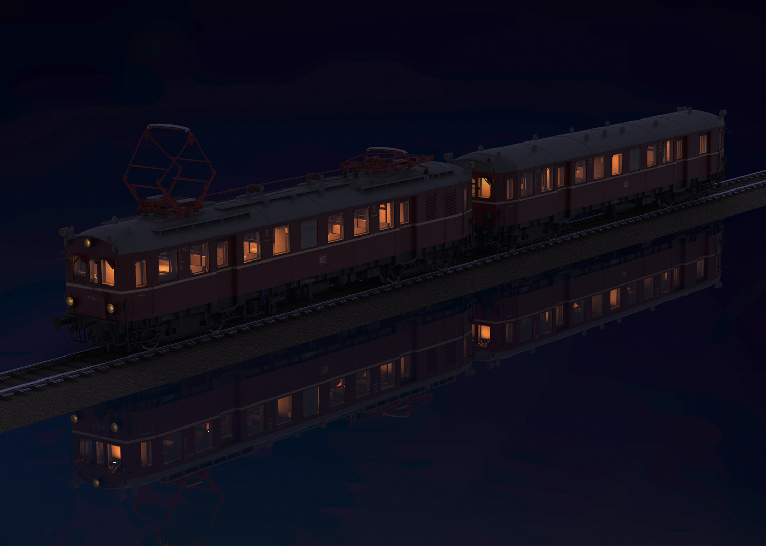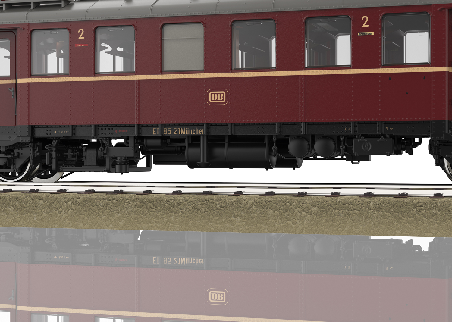 ET 85 als angetriebene Einheit mit Digital-Decoder und umfangreichen Geräuschfunktionen. Geregelter Hochleistungsantrieb. Vier Achsen angetrieben. Haftreifen. Dreilicht-Spitzensignal und zwei rote Schlusslichter über beide Einheiten an den äußeren Stirnseiten mit der Fahrtrichtung wechselnd, digital schaltbar. Beide Einheiten sind über eine mehrpolige Kupplung fest miteinander gekuppelt. Innenbeleuchtungen im Triebwagen ET 85 und Steuerwagen ES 85 konventionell in Betrieb, digital schaltbar. Beleuchtung mit wartungsfreien warmweißen Leuchtdioden (LED). Spitzensignal an Triebwagenseite 1 und Steuerwagenseite 2 jeweils separat digital abschaltbar. Führerstandsbeleuchtung an den äußeren Führerständen separat digital schaltbar. Sehr detaillierte Ausführung von Fahrwerk und Aufbau. Wagenkasten und Wagenboden aus Metall. Mehrteilige und mehrfarbige Inneneinrichtung. Nachgebildete Bremsleitungen und zwei Kurzkupplungsköpfe liegen bei. Gesamtlänge über Puffer ca. 46,8 cm.