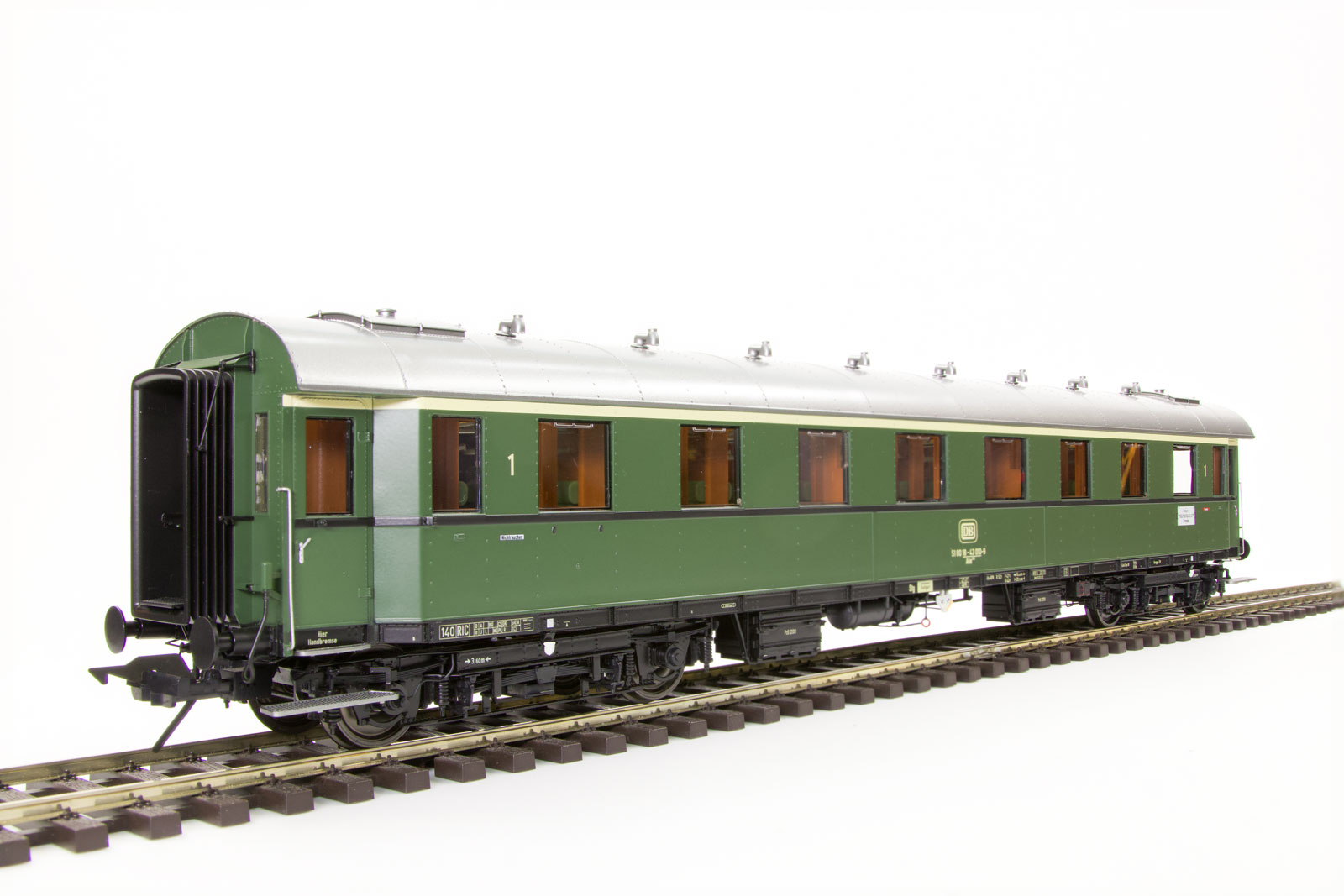 Schnellzugwagen Gruppe 29, 1. Klasse AB4üe-28, DB, Ep.4/1971, Betr.-Nr.51 80 18-43 010-9 Stg / Stuttgart Hbf, chromoxidgrün RAL6020