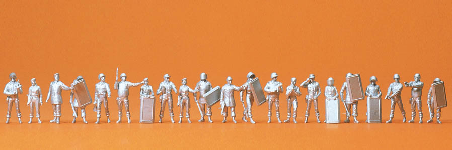 21 unbemalte Miniaturfiguren mit Zubehör, Bausatz, Figuren: Materialfarbe weiß