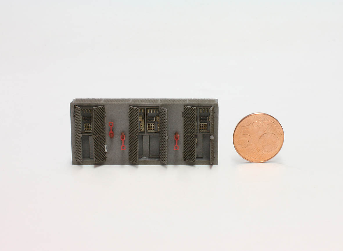 Große Schaltschrank-Anlage, Bausatz H0 (1:87), Maße in mm: Länge 60, Breite 8, Höhe 27