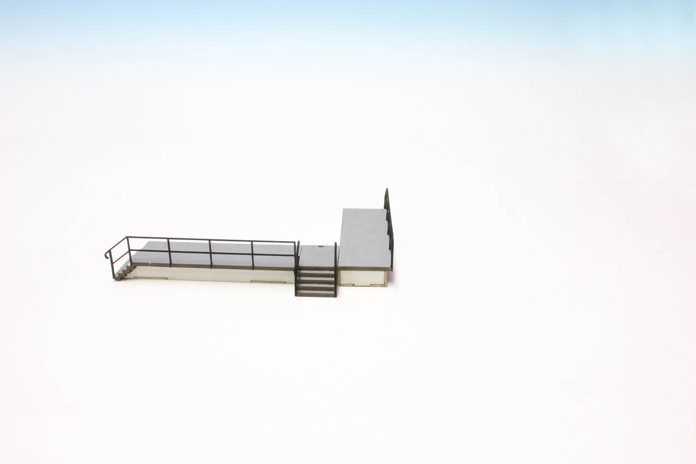 Erhöhte Laufgänge im Bereich von Maschinenanlagen, mit Geländer und 3 Treppenaufgängen, variabel einsetzbar,