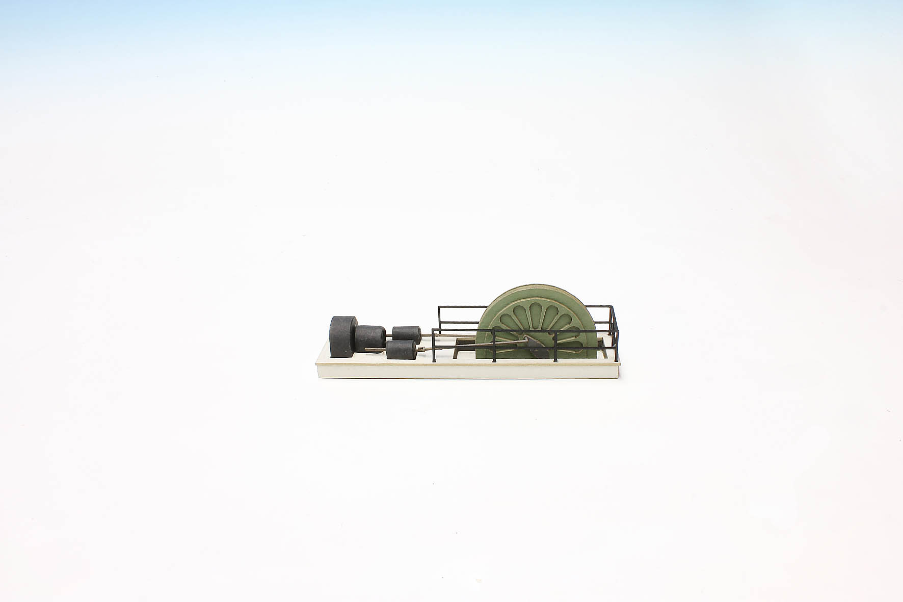kleine Maschine mit geschlossenem Schwungrad und 2 Zylindern.