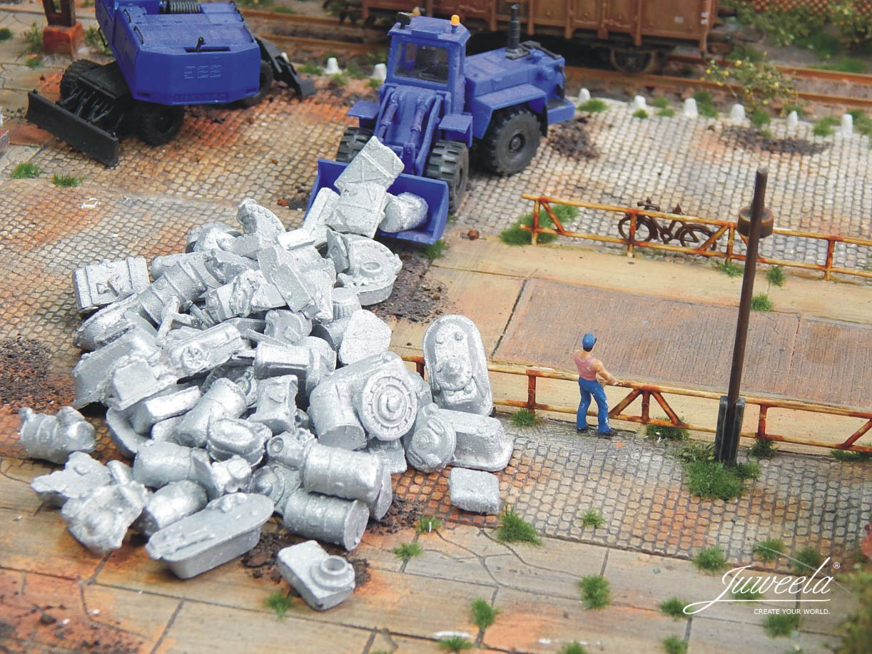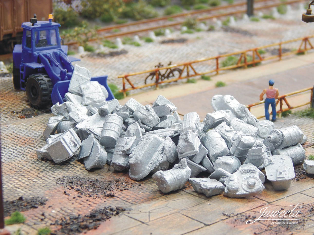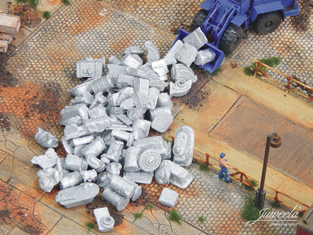 Maschinenteile, Rohre, Bleche, Flansche, Fässer, Zahnräder in bunter Mischung als loser Metallschrott: als Ladegut, für den Schrottplatz, für das Diorama, für die eigene Idee...