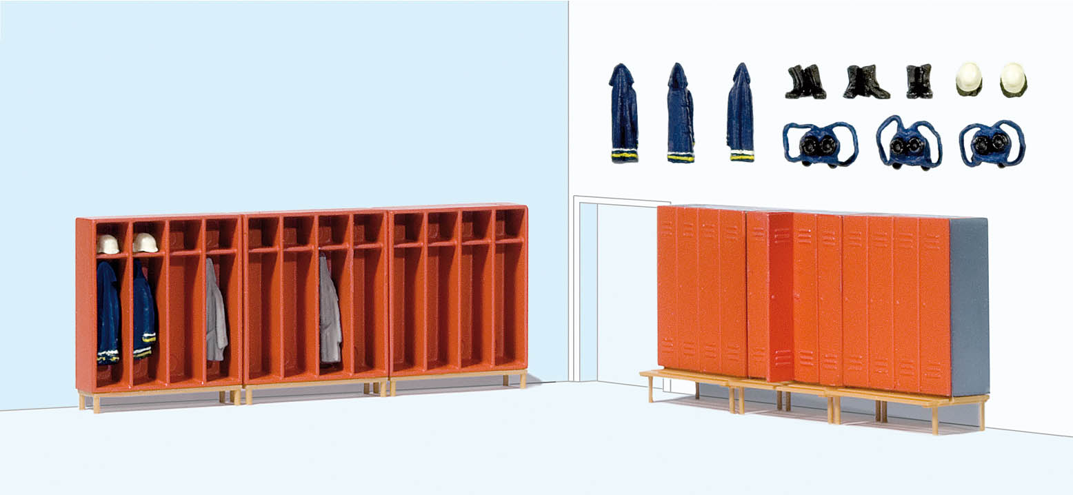 H0 - Feuerwehrspinde, 6 montierte Spinde, bemaltes Zubehör (023-17708) - Mein MBS Shop