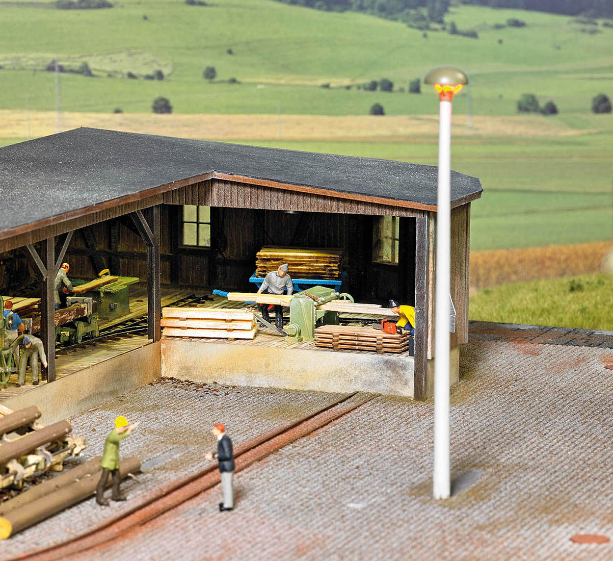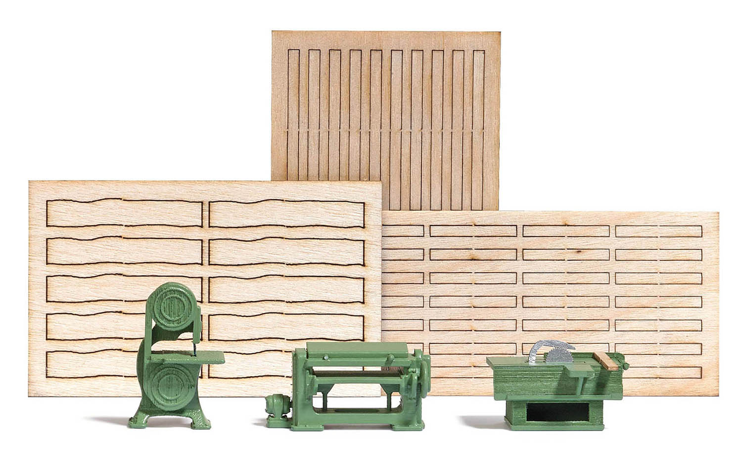 Die perfekte Ergänzung zum Sägewerk: Bandsäge, Kreissäge und Hobelmaschine in filigraner Ausführung, bereits fertig koloriert.