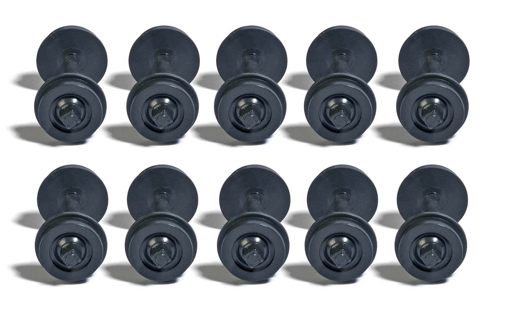 10 Achsen mit Rädern von Eisenbahnwaggons als Ladegut und zur Ausgestaltung von Bahnbetriebswerken und Werkstätten.