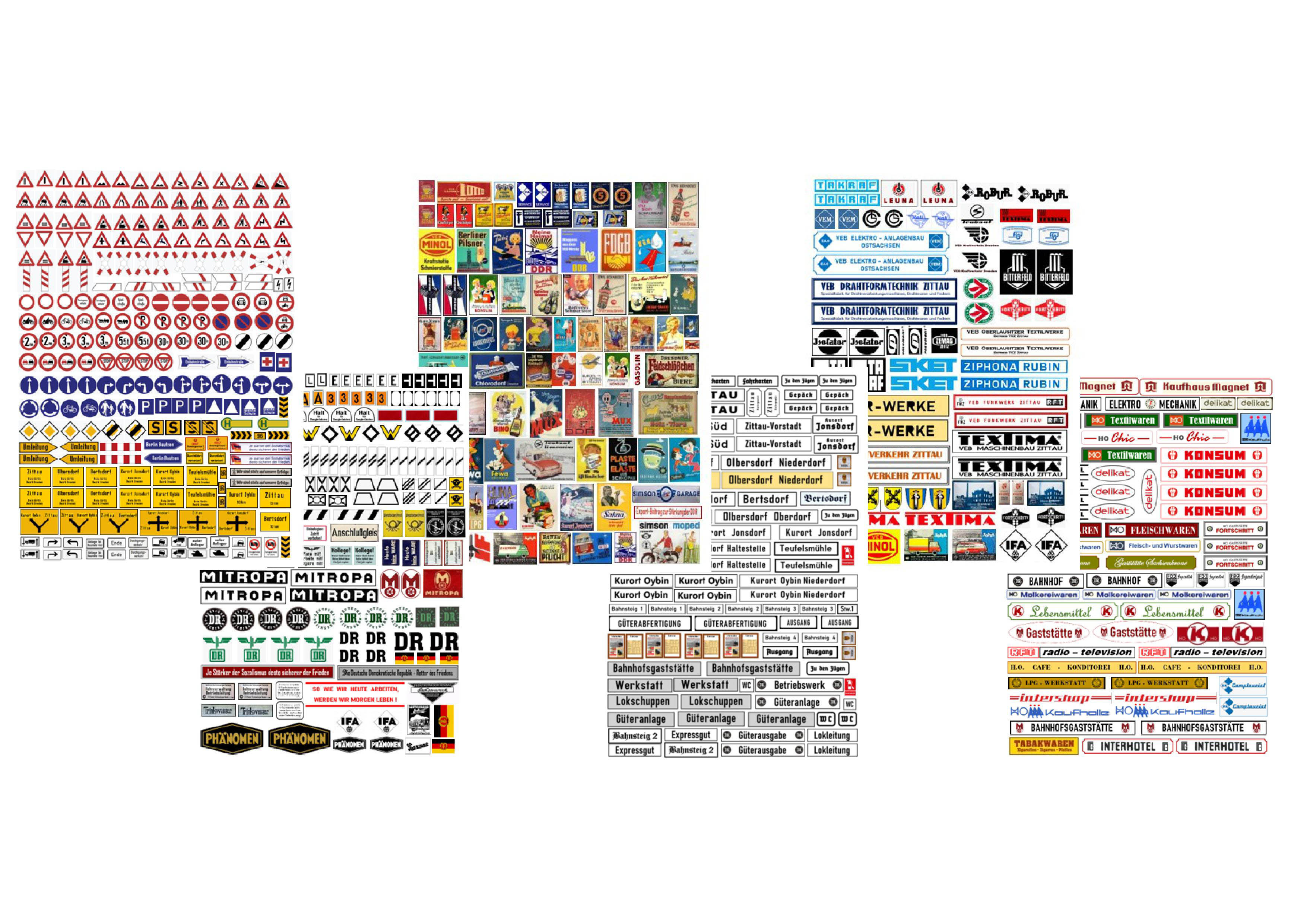 Sechs Bogen im Format A6 (105 x 148 mm), selbstklebend, nach Motiven entlang der Zittauer Schmalspurbahn-StreckeSet: Schilder, Tafeln, Reklame / Sächsische Schmalspurbahnen, "ZITTAUER SCHMALSPURBAHN" - Epoche III/IV - NEU 2022