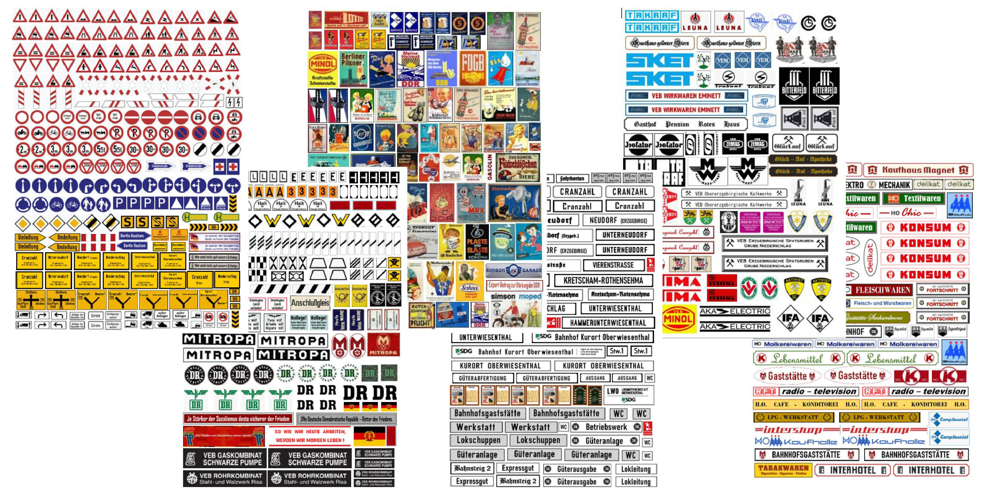 Set: Schilder, Tafeln, Reklame / Sächsische Schmalspurbahnen, "FICHTELBERGBAHN" - Epoche III/IV - NEU 2022