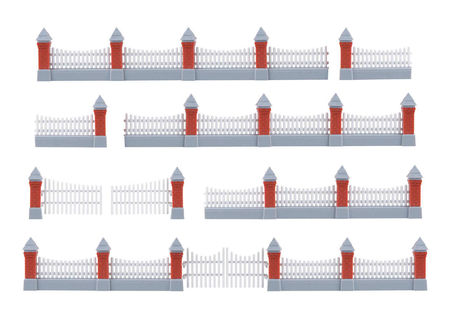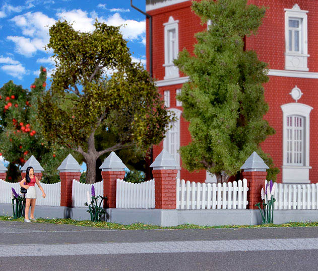 H0 Zaun, gemauert mit Holzlattung und 3 Doppeltoren