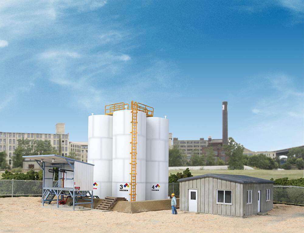 Mit 4 großen Lagertanks, Bürogebäude und Ladestelle.