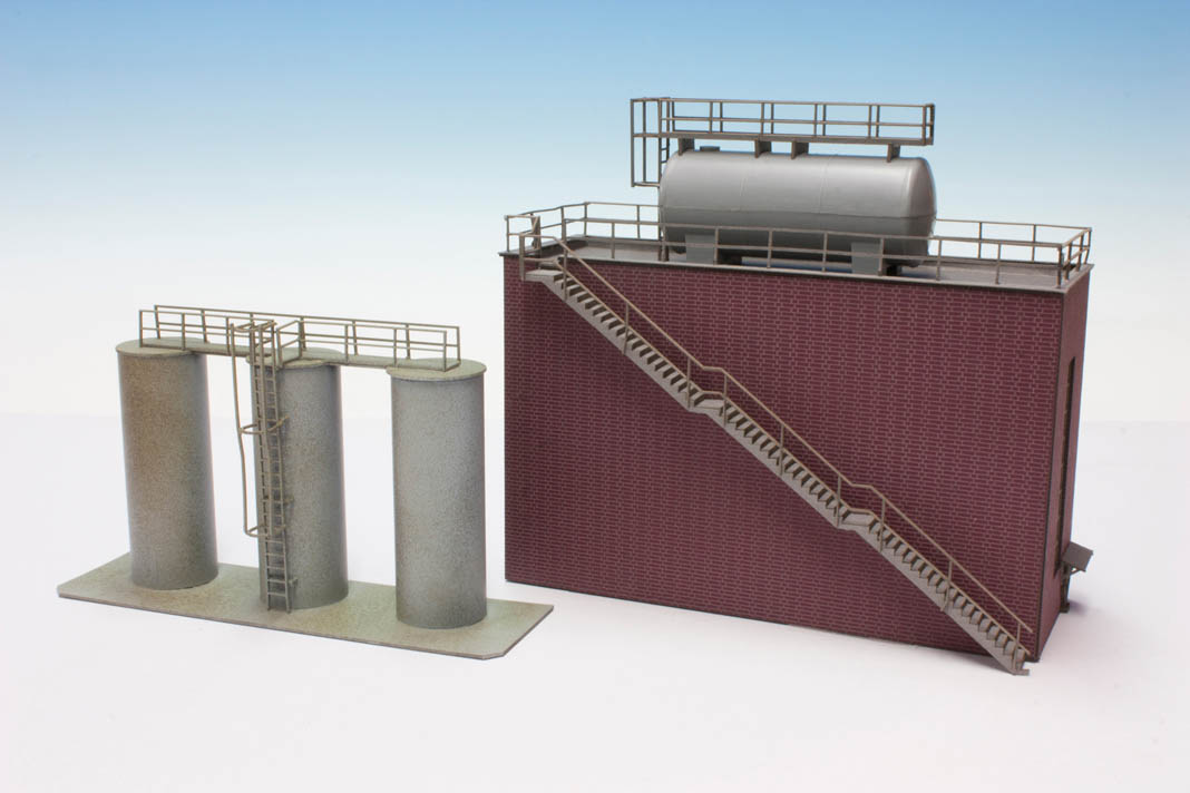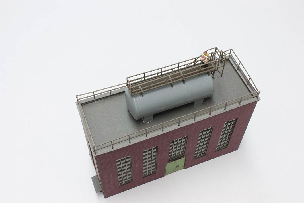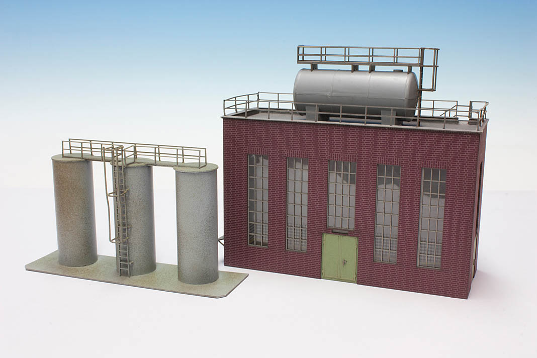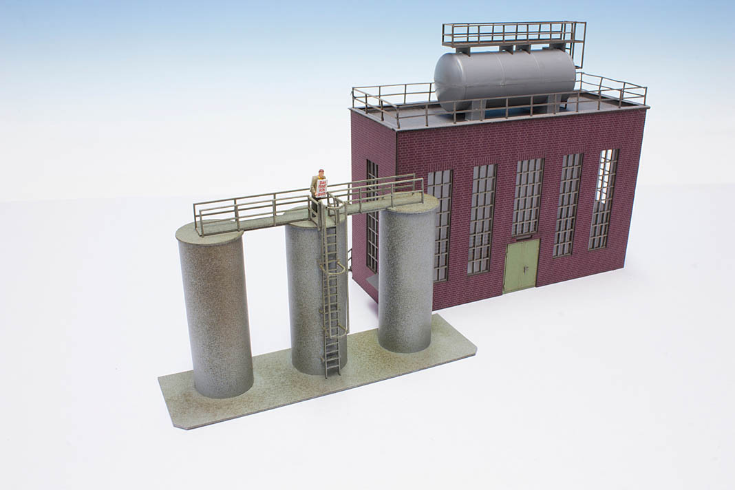 Kleines Fabrikgebäude mit Behälter auf dem Dach, Maße in mm: L 155 x B 66 x H 145