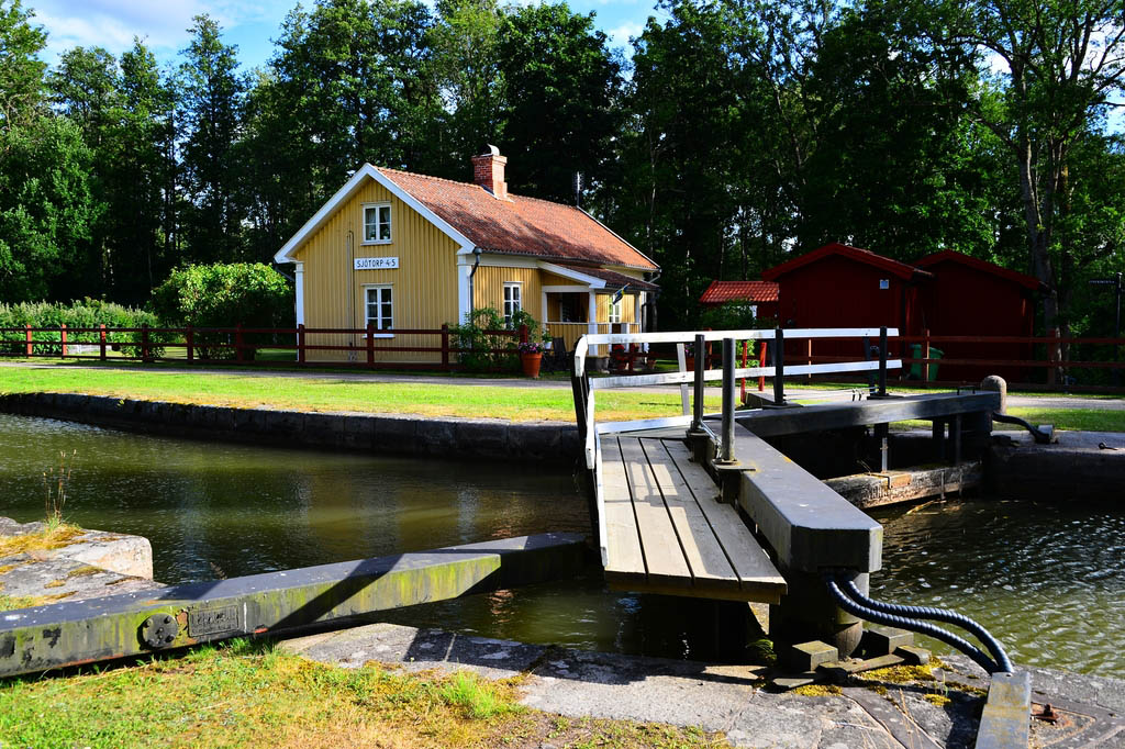 Das Vorbild steht in Sjötorp, Västra Götalands Län, an der Mündung des Göta-Kanals in den Fluß Vänern.