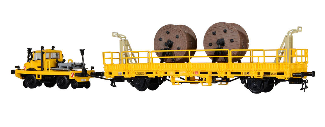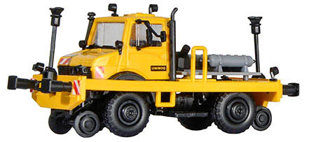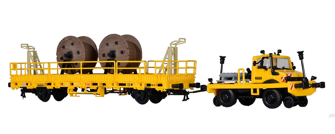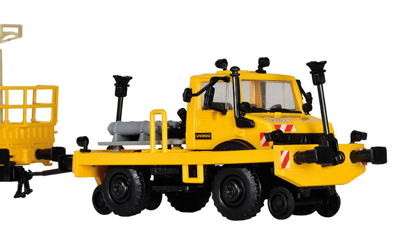 H0 Zweiwege UNIMOG mit Zug-, Schubrahmen und Fahrleitungsbauwagen