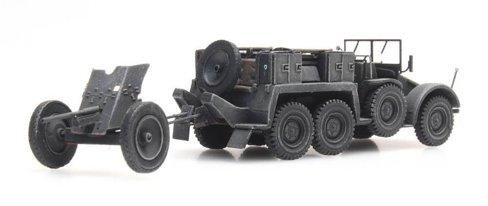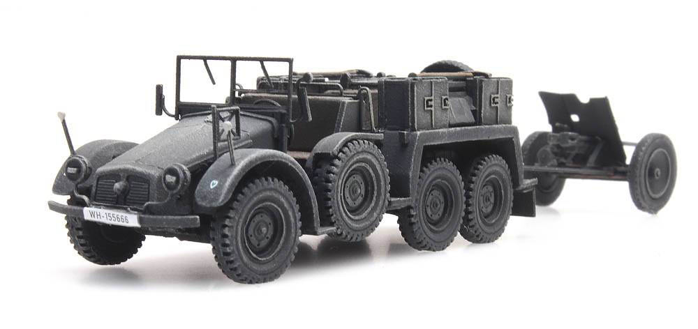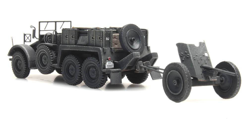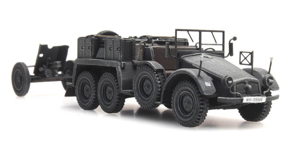 H0 - Wehrmacht Transportwagen Krupp-Protze mit 3,7-cm-PaK Geschütz - Grau