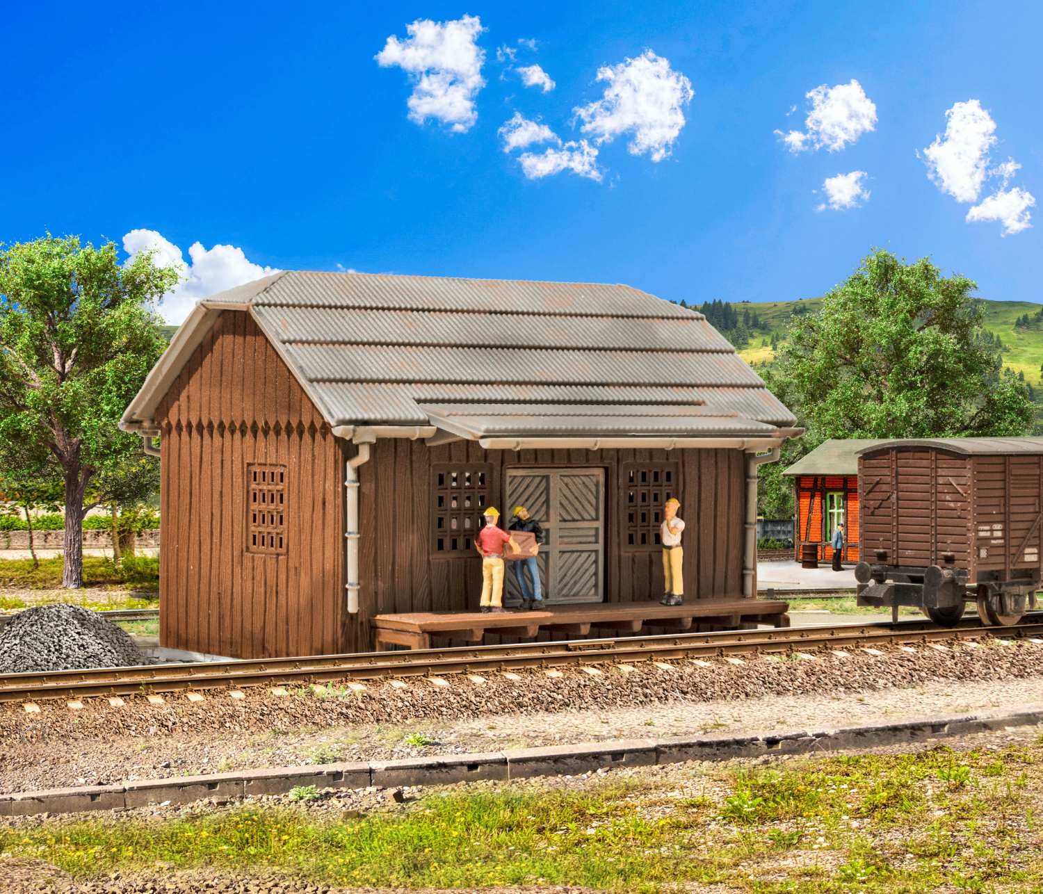 Dieser kleine Güterschuppen ist ideal zum Umschlagen und Aufbewahren von Gütern in überschaubarer Menge und passt hervorragend an eine Nebenstrecke.
