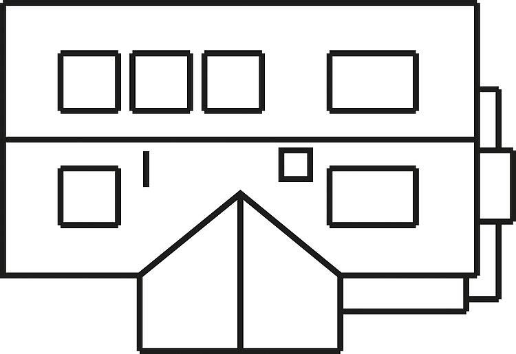 Fachwerkhaus mit überdachten Eingängen und Dachgauben.
