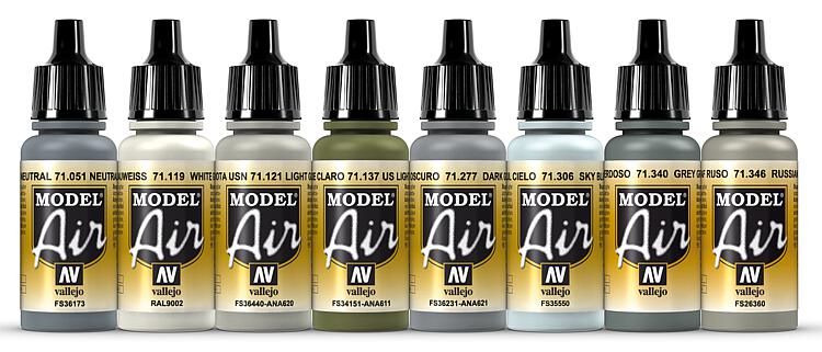 Mit extrafeinen Pigmenten speziell für den Airbrush-Bereich, in der praktischen 17 ml Kunststoffflasche. Set mit 8 Fläschchen. Farben speziell für die MiG-29 Fulcrum, 1980er Jahre bis heute. Je 1 x 71051, 71119, 71121, 71137, 71277, 71306, 71340, 71346.