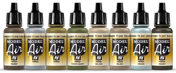 Mit extrafeinen Pigmenten speziell für den Airbrush-Bereich, in der praktischen 17 ml Kunststoffflasche. Set mit 8 Fläschchen. Farben sowjetischer / russischer Tarnung 1978 - 1989. Je 1 x 71038, 71046, 71081, 71137, 71244, 71246, 71332, 71347.