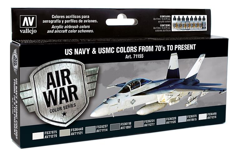 Farb-Set mit 8 Fläschchen à 17 ml. Speziell für Flugzeuge der US-Navy und USMC von 1970 bis heute.