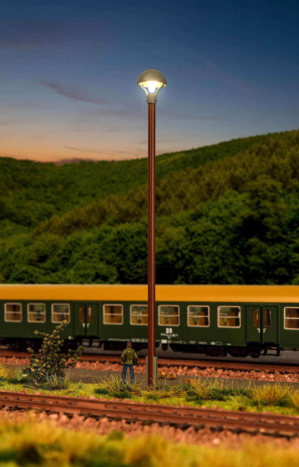 Eine beleuchtete Modellbahnanlage lässt nicht nur Kinderaugen leuchten. Die richtige Beleuchtung ist für das Gesamtbild Ihrer Anlage ein ganz wesentlicher Bestandteil. Eine gut gestaltete Modellbahnleuchte muss trotz aller Rücksicht auf die maßstäbliche Verkleinerung so beschaffen sein, dass man ihre Hauptkonturen auch noch aus größerer Entfernung erkennen kann. Modellbahnleuchten von Viessmann setzen nicht nur echte "Glanzpunkte", sondern sie glänzen auch durch hochwertige Verarbeitung und trotz feinster Detaillierung mit robuster Qualität.