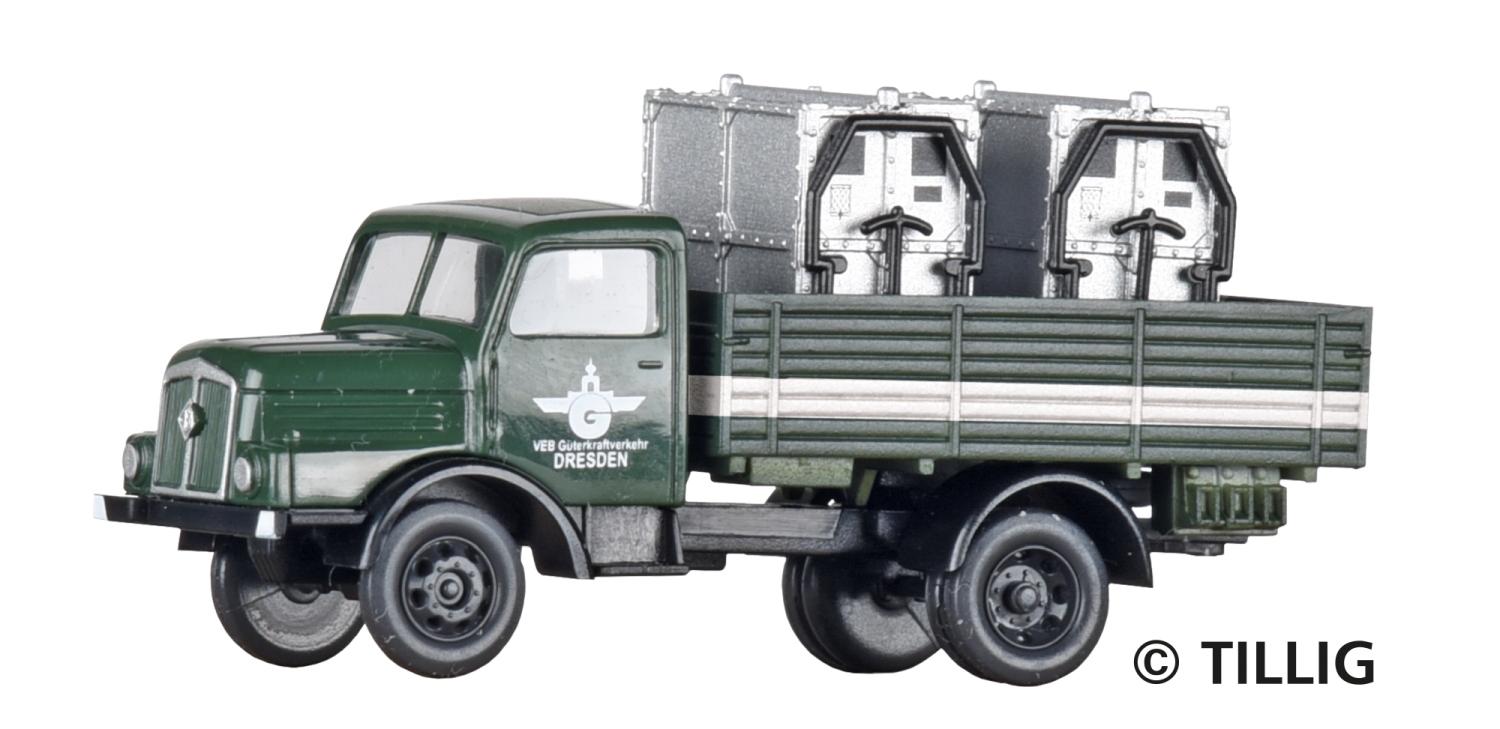 LKW H3A Hochbordpritsche „VEB Güterverkehr Dresden“, beladen mit Rollgutbehältern