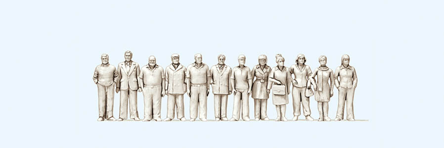1:100 - Stehende Frauen und Männer, 12 unbemalte Miniaturfiguren (023-74091) - Mein MBS Shop